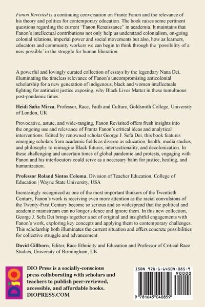 This book is a continuing conversation on Frantz Fanon and the relevance of his theory and politics for contemporary education. The book raises some pertinent questions regarding the current "Fanon Renaissance" in academia. It maintains that Fanon's intellectual contributions not only help us understand colonialism, on-going colonial relations, imperial power and social movements but also, how as learners, educators and community workers we can begin to think through the 'possibility of a new possible' in the struggle for human liberation. A powerful and lovingly curated collection of essays by the legendary Nana Dei, illuminating the timeless relevance of Fanon's uncompromising anticolonial scholarship for a new generation of Indigenous, Black and women intellectuals fighting for antiracist justice exposing, why Black Lives Matter in these tumultuous post-pandemic times. Heidi Safia Mirza, Professor, Race, Faith and Culture, Goldsmith College, University of London, UK Provocative, astute, and wide-ranging, Fanon Revisited offers fresh insights into the ongoing use and relevance of Frantz Fanon's critical ideas and analytical interventions. Edited by renowned scholar George J. Sefa Dei, this book features emerging scholars from academic fields as diverse as education, health, media studies and philosophy to reimagine Black futures, intersectionality, and decolonization. In these challenging and uncertain times of global pandemic and protests, engaging with Fanon and his interlocutors can serve as a necessary balm for justice, healing and humanization. Professor Roland Sintos Coloma, Division of Teacher Education, College of Education Wayne State University, USA Increasingly recognized as one of the most important thinkers of the 20th Century, Fanon's work is receiving more attention as the racial convulsions of the 21st Century become serious and so widespread that the political and academic mainstream can no longer silence and ignore them. In this new collection, George J. Sefa Dei brings together a set of original and insightful engagements with Fanon's work, exploring key concepts and applying them to contemporary challenges. This scholarship both illuminates the current situations and offers concrete possibilities for collective struggle and advancement. David Gillborn, Editor, Race Ethnicity and Education and Professor of Critical Race Studies, University of Birmingham, UK
