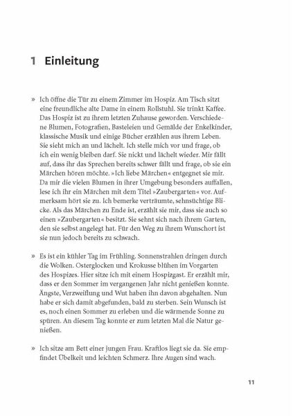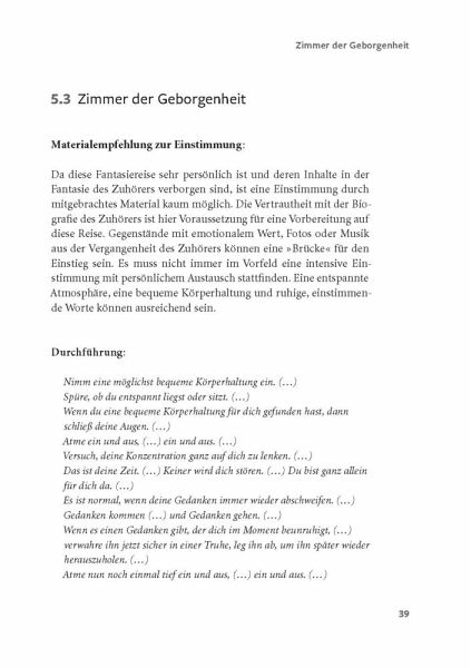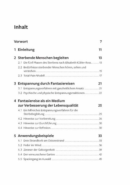 "Mach es dir nun so bequem wie möglich. Wenn du die richtige Körperhaltung für dich gefunden hast, dann schließe deine Augen. Atme ganz entspannt ein und aus. Wenn du bereit bist, nehme ich dich mit auf eine Reise. Stell dir vor..."Eine Reise in die Welt der Fantasie kann für schwer erkrankte und sterbende Menschen zu einem besonderen Erlebnis werden. Wünsche und Sehnsüchte, die für sie nicht mehr erfüllbar sind, erleben sie durch die Fantasiereisen. Orte, die unerreichbar geworden sind, werden bildhaft wahrgenommen. Träume und Erinnerungen fühlen sich lebendig an. Mit der Kraft der Fantasie können Symptome gelindert werden. Angehörige und Begleitende können die Fantasiereisen nutzen, um die Lebensqualität schwer Erkrankter und Sterbender zu verbessern.Ein Buch für Angehörige und Fachkräfte, das neben zahlreichen Anwendungsbeispielen auch Begleitinformationen zu den Themen Sterbebegleitung, Entspannung und Verbesserung der Lebensqualität durch Fantasiereisen bietet.