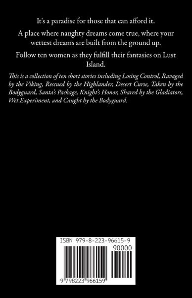 It's a paradise for those that can afford it. A place where naughty dreams come true, where your wettest dreams are built from the ground up. Follow ten women as they fulfill their fantasies on Lust Island. This is a collection of ten short stories including Losing Control, Ravaged by the Viking, Rescued by the Highlander, Desert Curse, Taken by the Bodyguard, Santa's Package, Knight's Honor, Shared by the Gladiators, Wet Experiment, and Caught by the Bodyguard.