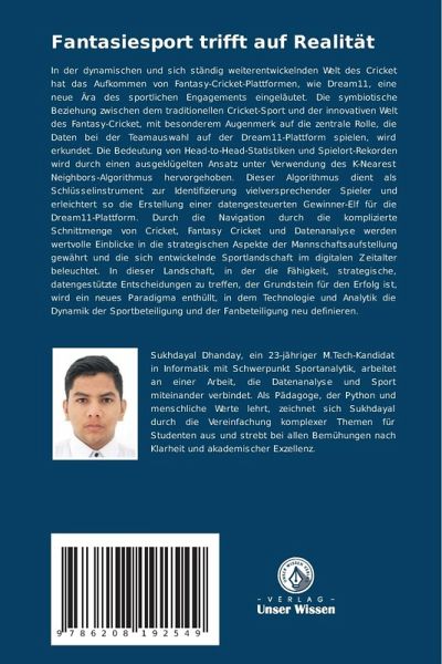 In der dynamischen und sich ständig weiterentwickelnden Welt des Cricket hat das Aufkommen von Fantasy-Cricket-Plattformen, wie Dream11, eine neue Ära des sportlichen Engagements eingeläutet. Die symbiotische Beziehung zwischen dem traditionellen Cricket-Sport und der innovativen Welt des Fantasy-Cricket, mit besonderem Augenmerk auf die zentrale Rolle, die Daten bei der Teamauswahl auf der Dream11-Plattform spielen, wird erkundet. Die Bedeutung von Head-to-Head-Statistiken und Spielort-Rekorden wird durch einen ausgeklügelten Ansatz unter Verwendung des K-Nearest Neighbors-Algorithmus hervorgehoben. Dieser Algorithmus dient als Schlüsselinstrument zur Identifizierung vielversprechender Spieler und erleichtert so die Erstellung einer datengesteuerten Gewinner-Elf für die Dream11-Plattform. Durch die Navigation durch die komplizierte Schnittmenge von Cricket, Fantasy Cricket und Datenanalyse werden wertvolle Einblicke in die strategischen Aspekte der Mannschaftsaufstellung gewährtund die sich entwickelnde Sportlandschaft im digitalen Zeitalter beleuchtet. In dieser Landschaft, in der die Fähigkeit, strategische, datengestützte Entscheidungen zu treffen, der Grundstein für den Erfolg ist, wird ein neues Paradigma enthüllt, in dem Technologie und Analytik die Dynamik der Sportbeteiligung und der Fanbeteiligung neu definieren.
