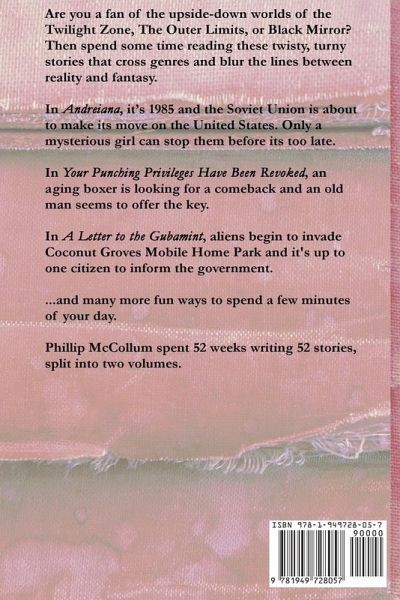 Are you a fan of the upside-down worlds of the Twilight Zone, The Outer Limits, or Black Mirror? How about Stephen King or Neil Gaiman? Then spend some time reading these 26 twisty, turny stories that cross genres and blur the lines between reality and fantasy. In Andreiana, it's 1985 and the Soviet Union is about to make its move on the United States. Only a mysterious girl can stop them before its too late. In Your Punching Privileges Have Been Revoked, an aging boxer is looking for a comeback and an old man seems to offer the key. In A Letter to the Gubamint, aliens begin to invade Coconut Groves Mobile Home Park and it's up to one citizen to inform the government. All 52 of Phillip McCollum's Fantastic Shorts are available over two volumes.