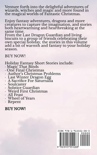 Venture forth into the delightful adventures of wizards, witches and magic and more found in the magical worlds of Fantastic Christmas. Enjoy fantasy adventures, dragons and more creatures to capture the imagination, and stories both heartwarming and heartbreaking at the same time. From the Last Dragon Guardian and living biscuits to a group of friends celebrating their own special holiday, the stories in this volume add a bit of warmth and fantasy to your holiday season. BUY NOW! Holiday Fantasy Short Stories include:Magic That Binds One Final Christmas Author's Christmas Problems Last Winter Dragon Egg A Sacrifice For Saturnalia Soulcaster Solstice Guardian Weird First Christmas All Feast Wheel of Years Repent BUY NOW!