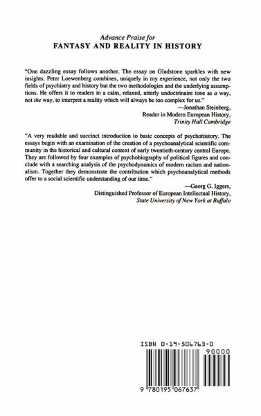 In Fantasy and Reality in History, Peter Loewenberg, a historian, political psychologist, and psychoanalyst, brings what the discipline of psychoanalysis has learned about human conduct and the irrational to bear on the analysis and writing of history. The result is a remarkable series of studies on individual and social anxiety, racism and nationalism, and crisis management. The first section proposes psychohistorical theoretical and clinical perspectives on Freud, psychoanalysis, social structure, and culture. Loewenberg examines creative group process in early twentieth century Zurich and how the earliest practitioners of psychoanalysis - Freud, C.G. Jung, Karl Abraham, and others - established the discipline's understanding of the unconscious and how it functions. The second section explores the tensions in the lives and politics of modern political leaders. Loewenberg offers case studies including the pornographic sexual politics of the nineteenth-century British Liberal Prime Minister William E. Gladstone, interpretations of the self-sacrifice of the German-Jewish foreign minister Walther Rathenau, the ideas of Austrian President Karl Renner at resolving nationality conflicts, and the primitive psychic splitting of the contemporary Russian fascist demagogue Vladimir Zhirinovsky. The final section interprets manifestations of anxiety in history, and its expression in racism, anti-Judaism, Nazism, and nationalism. In each study, Loewenberg blends clinical and historical-political methods which not only produce new and exciting research, but also demonstrate how a psychoanalytic approach enriches our understanding of history, and how historical and social science perspectives mayinform the resolution of clinical conflicts.
