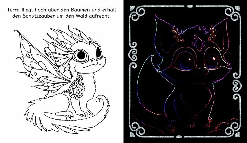 Erkunde eine neue, atemberaubende Welt: den Silberwald! Lerne die fantastischen Bewohner des Waldes kennen und erwecke sie zum Leben, indem du die Tiere Bild für Bild mit dem Kratzstift freikratzt.- 12 schimmernde Kratzkarten mit Glitzerrahmen- Mit süßen Ausmalbildern auf den Rückseiten der Kratzkarten