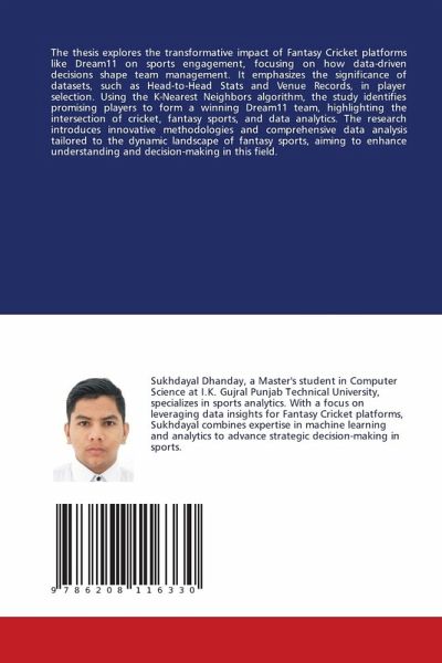 The thesis explores the transformative impact of Fantasy Cricket platforms like Dream11 on sports engagement, focusing on how data-driven decisions shape team management. It emphasizes the significance of datasets, such as Head-to-Head Stats and Venue Records, in player selection. Using the K-Nearest Neighbors algorithm, the study identifies promising players to form a winning Dream11 team, highlighting the intersection of cricket, fantasy sports, and data analytics. The research introduces innovative methodologies and comprehensive data analysis tailored to the dynamic landscape of fantasy sports, aiming to enhance understanding and decision-making in this field.