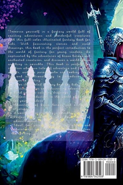 "Immerse yourself in a fantasy world full of exciting adventures and wonderful creatures with this full-color illustrated fantasy book for kids. With fascinating stories and vivid drawings, this book is the perfect introduction to the fantasy world for young readers. Be captivated by the adventures of brave heroes and enchanted creatures, and discover a world where anything is possible. This book is perfect for children who love tales of adventure and fantasy worlds, and for parents looking for a fun and educational way to introduce their children to reading." A color-illustrated fantasy book for kids Exciting stories and fascinating adventures Vivid and eye-catching drawings A perfect introduction to the world of fantasy for young readers Adventures of brave heroes and enchanted creatures A world where anything is possible Perfect for children who love tales of adventure and fantasy worlds Ideal for parents looking for a fun and educational way to introduce their children to reading. Ideal for parents looking for a fun and educational way to introduce their children to reading.