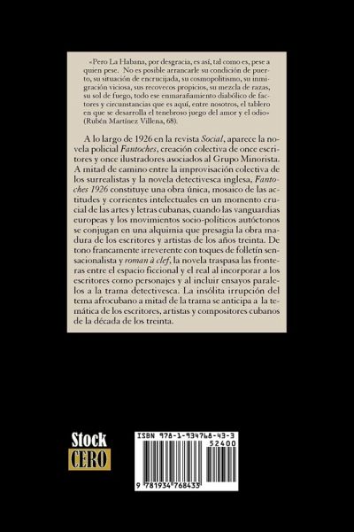 "But, unfortunately, such is Havana. It is impossible to change its condition as a port, as a crossroad, or its cosmopolitism, its vicious immigration, its propitiatory hiding places, its mixture of races, its fiery sun, all that diabolical entanglement of factors and circumstances that is here, amongst us, the board where the shady games of love and hatred are played"(Rubén Martínez Villena, 68). Throughout 1926, the literary journal Social publishes the detection narrative Fantoches (Puppets), a collective endeavor of eleven writers and eleven illustrators associated with the Grupo Minorista. Halfway between a Surrealist collective improvisation and a British detective novel, Fantoches 1926 is a unique creation, a confluence of intellectual currents that combine the innovations of the European avant-grade and autochthonous socio-political movements during the early Cuban Republic. An irreverent work influenced by the British sensation novels and the French romans à clef, Fantoches blurs the boundaries that separate fiction from reality by featuring writers as characters and by incorporating analytical essays into the plot. The inclusion of digressions about Cuba's African heritage anticipates the mature works of writers and artists from the thirties such as Carpentier, Guillén, Abela and Enríquez. This edition, gleaned from the issues of Social in the collection of the New York Public Library, reproduces the illustrations and typographical ornamentations from the original. Editorial changes have been kept to a minimum, modernizing the spelling of fue, vio, dio and other monosyllabic words, and standardizing the spelling of some names that vary among authors. On a few occasions, unusual spellings that were interpreted as typographical errors ("vendabal" for "vendaval"; "Brocadero" for "Trocadero") were changed. The original subtitle "A Modern Novel by Twelve Cuban Writers" was changed to "Eleven Cuban Writers" since the same author, Carlos Loveira, writes the first and the last chapters.