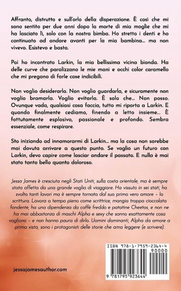Affranto, distrutto e sull'orlo della disperazione. È così che mi sono sentito per due anni dopo la morte di mia moglie che mi ha lasciato lì, solo con la nostra bimba. Ho stretto i denti e ho continuato ad andare avanti per la mia bambina... ma non vivevo. Esistevo e basta. Poi ho incontrato Larkin, la mia bellissima vicina bionda. Ha delle curve che paralizzano le mie mani e occhi color caramello che mi pregano di farle cose indicibili. Non voglio desiderarla. Non voglio guardarla, e sicuramente non voglio bramarla. Voglio evitarla. È solo che... Non posso. Ovunque vada, qualsiasi cosa faccia, tutto mi riporta a Larkin. E quando finalmente cediamo, finendo a letto insieme... È fottutamente esplosivo, passionale e profondo. Sembra essenziale, come respirare. Sto iniziando ad innamorarmi di Larkin... ma la cosa non sarebbe mai dovuta arrivare a questo punto. Se voglio un futuro con Larkin, devo capire come lasciar andare il passato. E nulla è mai stato tanto bello quanto doloroso.