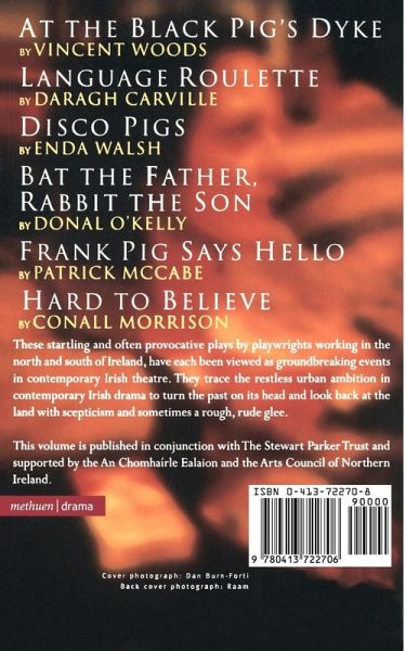 A startling collection of plays by playwrights working in the north and south of Ireland, all of which have been groundbreaking events in contemporary Irish theatre At The Black Pig's Dyke by Vincent Woods depicts a group of mummers in the borderland between North and South, blending their rituals of death with the all-too-modern assassins going about their awful task; in Hard To Believe by Conall Morrison an army intelligence agent for the British invokes his Protestant preacher grandfather and his turncoat father who married a Catholic and thereafter denied his background; in Disco Pigs by Enda Walsh two friends bonded in their fantasies and shared baby-talk face into Cork city on their seventeenth birthday; Frank Pig Says Hello by Patrick McCabe (Winner of the 1997 George Devine Award) is about the sullen meanness of a village community towards an innocently simple young man; in Language Roulette by Daragh Carville a group of young people in Belfast come together for a reunion and the underlying atmosphere is anger and revenge; Bat The Father, Rabbit The Son by Donal O'Kelly is a powerful personal story about the reversal of a father-son relationship where the son is envious of the father's unambitious expressiveness. Foreword by the award-winning Irish playwright, Sebastian Barry