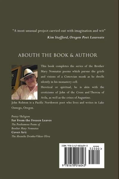 Intellectual poetry which delves into the psyche of a Trappist monk who questions his beliefs, struggles with erotic fantasies and despairs at the world in general.