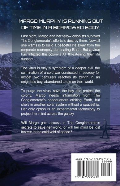Last night, Margo and her fellow colonists survived The Conglomerate's efforts to destroy them. Now all she wants is to build a peaceful life away from the corporate monopoly dominating Earth. But a virus has infected the colony's AI, threatening their life support. The virus is only a symptom of a deeper evil, the culmination of a cold war conducted in secrecy for almost two centuries reaches its zenith in an enigmatic boy, abandoned to die on their world. To purge the virus, save the boy and protect the colony, Margo needs information from The Conglomerate's headquarters orbiting Earth, but she's in another solar system without a spaceship. Her only option is an experimental technology to project her mind across the galaxy. Will Margo gain access The Conglomerate’s secrets to save her world, or will her mind be lost forever in the cold void of space?