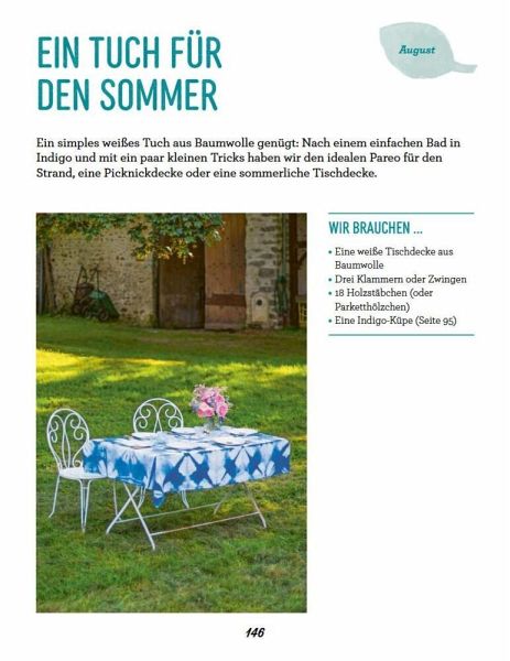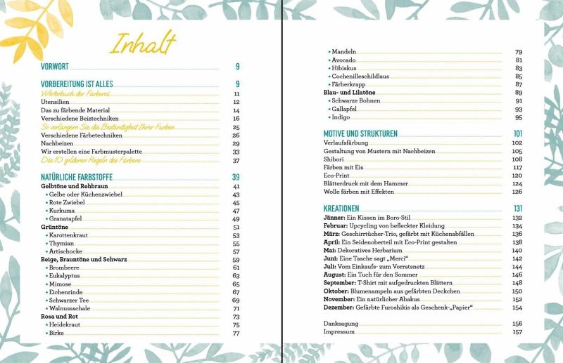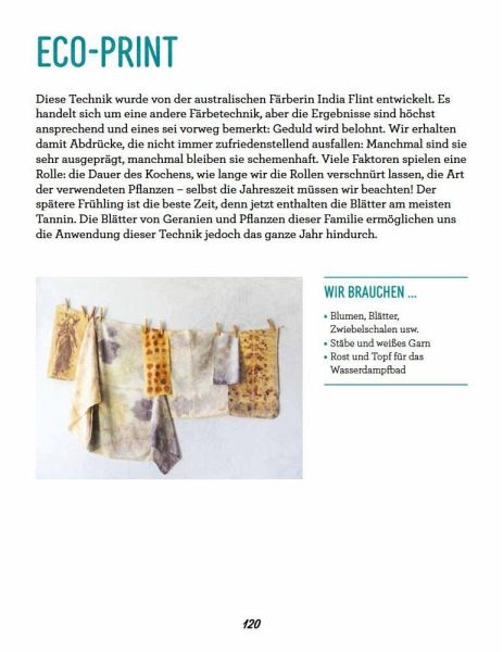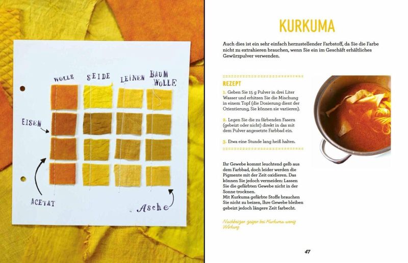 Dass man mit Zwiebeln färben kann, ist vermutlich dank der Ostereier bekannt, aber dass auch mit Thymian, Schwarztee, Mandeln oder Hibiskusblüten Stoffe gefärbt werden können, ist vielen doch neu. Wie leicht und mit welch einfachen Mitteln selbst zuhause mit Pflanzen gefärbt werden kann, erklärt dieses Buch. Zuerst werden die wichtigsten Stoffe vorgestellt, wie Wolle, Seide, Leinen und Baumwolle, dann werden die verschiedenen Färbetechniken erklärt und die Unterschiede in den Ergebnissen (Farbintensität) gezeigt sowie die Möglichkeit, die Farbnuancen zu beeinflussen. Eine weitere wichtige Frage wird natürlich auch beantwortet: die Haltbarkeit der Farben. Dann werden - nach Farben sortiert - die einzelnen Pflanzen vorgestellt, die sich in vielen Haushalten sowieso finden lassen bzw. sehr leicht im Handel erhältlich sind. Den Abschluss des Buches bilden 12 Projekte, die zeigen, wie die gefärbten Stoffe weiterverarbeitet werden können oder wie alte Stoffe (z. B. ein fleckiges T-Shirt oder Häkeldeckchen) dank der neuen Farbe gleich ein völlig anderes Aussehen erhalten.
