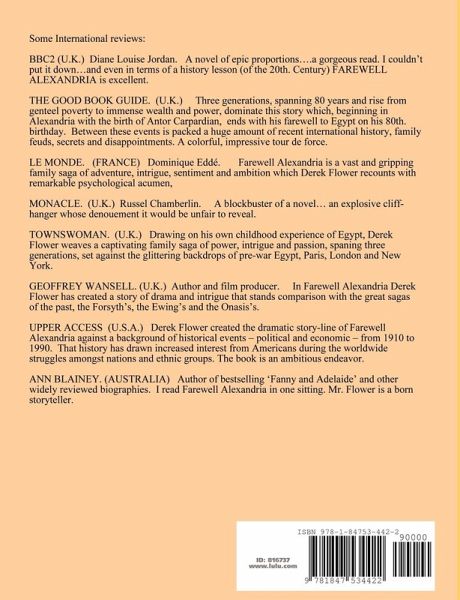 In a story spanning eighty years of a family that changed world history, flashbacks, fast-forwards and multiple plots intersect each other while innocent romance, steamy sex, noble sentiments, treachery and a whodunit- style mystery keeps the reader turning the pages. Set against a changing backdrop of pre-war Egypt, of Paris, London and New York in the sixties and seventies, terrorism in the Middle East and famine in Ethiopia, all the aspects of human strengths and frailties are brought to life in this three generation saga where a dramatic climax re-dimensions a man's destiny.