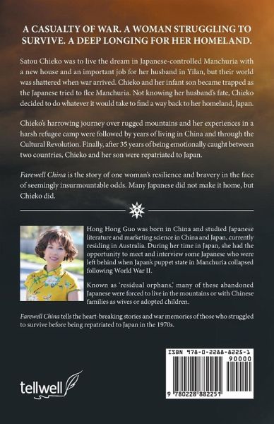 A CASUALTY OF WAR. A WOMAN STRUGGLING TO SURVIVE. A DEEP LONGING FOR HER HOMELAND. Satou Chieko was to live the dream in Japanese-controlled Manchuria with a new house and an important job for her husband in Yilan, but their world was shattered when war arrived. Chieko and her infant son became trapped as the Japanese tried to flee Manchuria. Not knowing her husband's fate, Chieko decided to do whatever it would take to find a way back to her homeland, Japan. Chieko's harrowing journey over rugged mountains and her experiences in a harsh refugee camp were followed by years of living in China and through the Cultural Revolution. Finally, after 35 years of being emotionally caught between two countries, Chieko and her son were repatriated to Japan. Farewell China is the story of one woman's resilience and bravery in the face of seemingly insurmountable odds. Many Japanese did not make it home, but Chieko did.