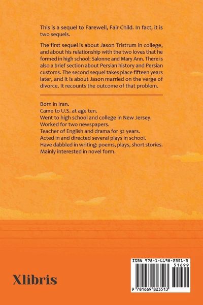 This is a sequel to Farewell, Fair Child. In fact, it is two sequels. The first sequel is about Jason Tristrum in college, and about his relationship with the two loves that he formed in high school: Salonne and Mary Ann. There is also a brief section about Persian history and Persian customs. The second sequel takes place fifteen years later, and it is about Jason married on the verge of divorce. It recounts the outcome of that problem.