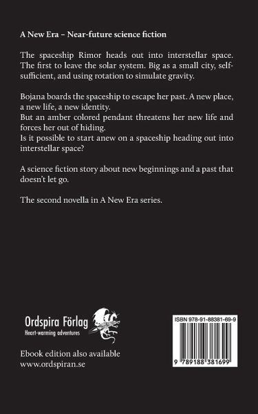 A New Era - Near-future science fiction The spaceship Rimor heads out into interstellar space. The first to leave the solar system. Big as a small city, self-sufficient, and using rotation to simulate gravity. Bojana boards the spaceship to escape her past. A new place, a new life, a new identity. But an amber colored pendant threatens her new life and forces her out of hiding. Is it possible to start anew on a spaceship heading out into interstellar space? A science fiction story about new beginnings and a past that doesn't let go.