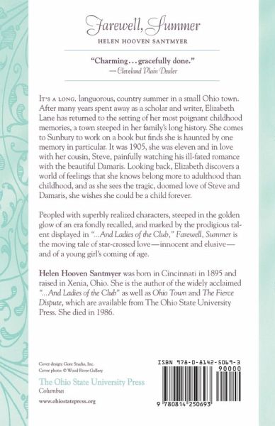 It's a long, languorous, country summer in a small Ohio town. After many years spend away as a scholar and a writer, Elizabeth Lane has returned to the setting of her most poignant childhood memories, a town steeped in her family's long history. She comes to Sunbury to work on a book but finds she is haunted by one memory in particular. It was 1905, she was eleven and in love with her cousin, Steve, painfully watching his ill-fated romance with the beautiful Damaris. Looking back, Elizabeth discovers a world of feeling what she knows belong more to adulthood than childhood, and as she sees the tragic, doomed love of Steve and Damaris, she wishes she could be a child forever. Peopled with superbly realized characters, steeped in the golden glow of an era fondly recalled, and marked by the prodigious talent displayed in ". . .And Ladies of the Club," Farewell, Summer is the moving tale of star-crossed love-innocent and elusive-and a young girl coming of age.