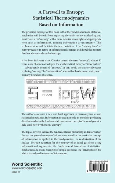 The principal message of this book is that thermodynamics and statistical mechanics will benefit from replacing the unfortunate, misleading and mysterious term "entropy" with a more familiar, meaningful and appropriate term such as information, missing information or uncertainty. This replacement would facilitate the interpretation of the "driving force" of many processes in terms of informational changes and dispel the mystery that has always enshrouded entropy.It has been 140 years since Clausius coined the term "entropy"; almost 50 years since Shannon developed the mathematical theory of "information" -- subsequently renamed "entropy". In this book, the author advocates replacing "entropy" by "information", a term that has become widely used in many branches of science.The author also takes a new and bold approach to thermodynamics and statistical mechanics. Information is used not only as a tool for predicting distributions but as the fundamental cornerstone concept of thermodynamics, held until now by the term "entropy".The topics covered include the fundamentals of probability and information theory; the general concept of information as well as the particular concept of information as applied in thermodynamics; the re-derivation of the Sackur-Tetrode equation for the entropy of an ideal gas from purely informational arguments; the fundamental formalism of statistical mechanics; and many examples of simple processes the "driving force" for which is analyzed in terms of information.