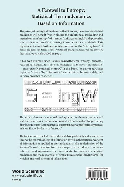 Ben-Naim (mathematics, The Hebrew U., Israel) goes one step beyond common interpretations of the principle of maximum entropy, replacing it with what he feels is the more suitable concept of information, or better yet, missing information (MI). He explains his rationale as he describes the history of studies of temperature and entropy and the association of entropy with disorder and MI. He describes the basic elements of probability theory, including the axiomatic approach and the relative frequency definition, then defines and explains elements of information theory, including MI and the average number of binary questions needed to acquire it. He explains the and the structure of the foundations of statistical thermodynamics. Ben-Naim also provides some simple applications such as the expansion of an ideal gas and a long series of very helpful appendices on a range of related issues.
