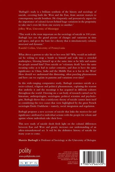 "Barbagli's study is a brilliant synthesis of the history and sociology of suicide, covering both the West and the East, from ancient martyrs to contemporary suicide bombers. He eloquently and persuasively argues for the importance of cultural factors behind huge variations in the propensity to take one's own life from one society to another."