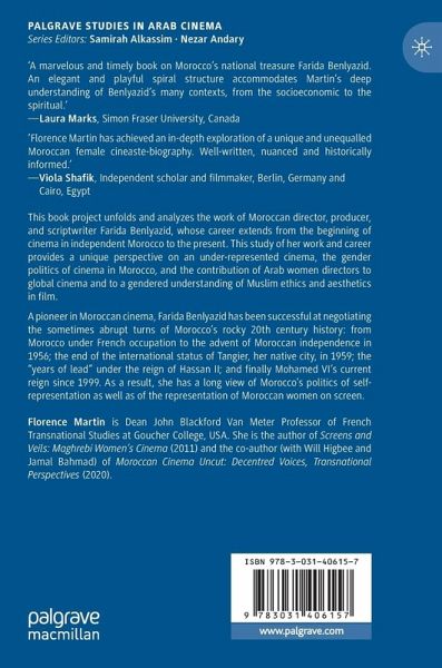 Farida Benlyazid and Moroccan Cinema is a significant contribution and a timely publication . The book explicitly invites film researchers to focus more than before on Moroccan women s cinema, and offers the readers a fresh look at the experience of the first Moroccan female producer and director. For these reasons, this academic endeavour will be of great importance to anyone working on or teaching film, media and gender studies, inside or outside the kingdom. (Said Chemlal, Africa Review, Vol. 17 (3), July, 2025)