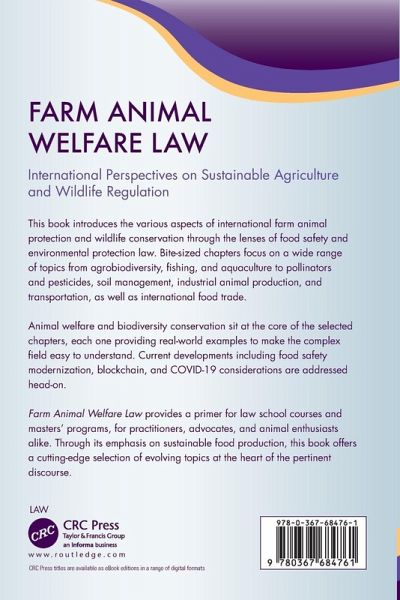 This book introduces the various aspects of international farm animal protection and wildlife conservation through the lenses of food safety and environmental protection law. Bite-sized chapters focus on a wide range of topics from agrobiodiversity, fishing, and aquaculture to pollinators and pesticides, soil management, industrial animal production, and transportation, as well as international food trade.