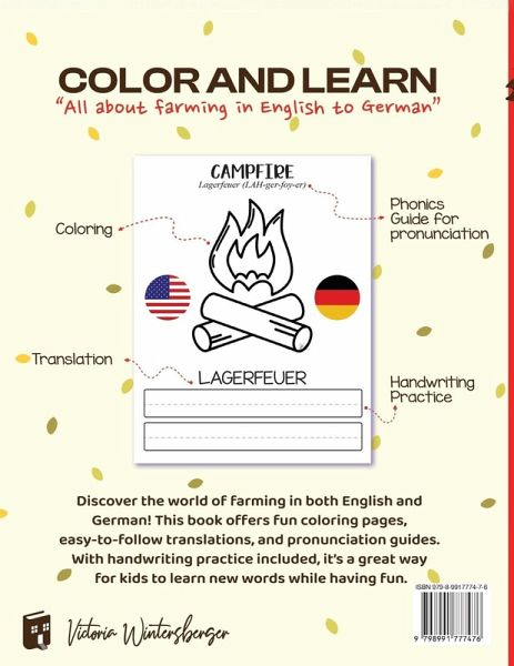 COLOR AND LEARN "All about farming in English and German" Discover the world of farming in both English and German! This book offers fun coloring pages, easy-to-follow translations, and pronunciation guides. With handwriting practice included, it's a great way for kids to learn new words while having fun.