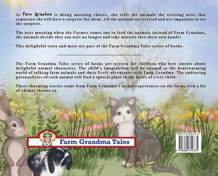 As Farm Grandma does morning chores, she tells the animals that tomorrow she will have a surprise for them. The next day, when Farm Grandma is late, the animals decide they can wait no longer and take matters into their own hands!