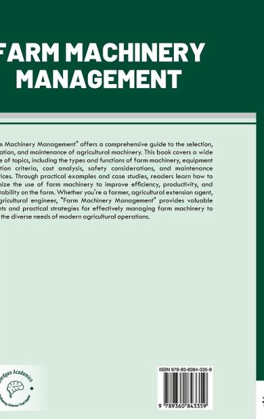 Farm Machinery Management offers a comprehensive guide to the selection, operation, and maintenance of agricultural machinery. This book covers a wide range of topics, including the types and functions of farm machinery, equipment selection criteria, cost analysis, safety considerations, and maintenance practices. Through practical examples and case studies, readers learn how to optimize the use of farm machinery to improve efficiency, productivity, and profitability on the farm. Whether you're a farmer, agricultural extension agent, or agricultural engineer, Farm Machinery Management provides valuable insights and practical strategies for effectively managing farm machinery to meet the diverse needs of modern agricultural operations.