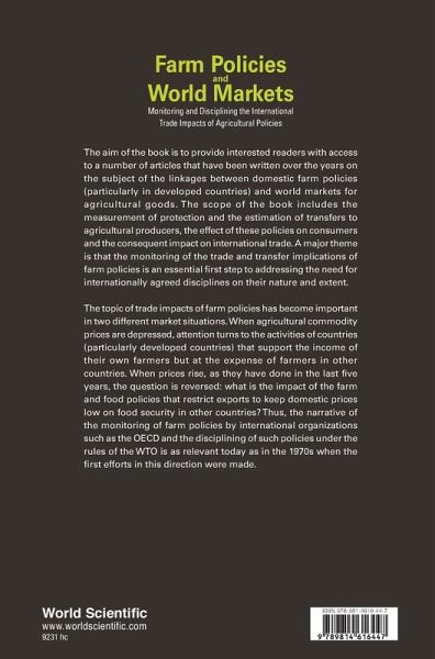 The aim of the book is to provide interested readers with access to a number of articles that have been written over the years on the subject of the linkages between domestic farm policies (particularly in developed countries) and world markets for agricultural goods. The scope of the book includes the measurement of protection and the estimation of transfers to agricultural producers, the effect of these policies on consumers and the consequent impact on international trade. A major theme is that the monitoring of the trade and transfer implications of farm policies is an essential first step to addressing the need for internationally agreed disciplines on their nature and extent. The topic of trade impacts of farm policies has become important in two different market situations. When agricultural commodity prices are depressed, attention turns to the activities of countries (particularly developed countries) that support the income of their own farmers but at the expense of farmers in other countries. When prices rise, as they have done in the last five years, the question is reversed: what is the impact of the farm and food policies that restrict exports to keep domestic prices low on food security in other countries? Thus, the narrative of the monitoring of farm policies by international organizations such as the OECD and the disciplining of such policies under the rules of the WTO is as relevant today as in the 1970s when the first efforts in this direction were made.