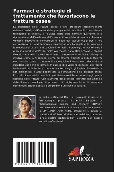 La guarigione delle fratture ossee è una procedura eccezionalmente notevole poiché, a differenza della guarigione dei tessuti molli, che porta alla formazione di cicatrici, il risultato finale della normale guarigione è la rigenerazione dell'anatomia dell'osso e il completo ritorno alla funzione. Vengono illustrate le conoscenze di base dei tessuti ossei per il loro meccanismo di rimodellamento e riparazione per l'omeostasi, lo sviluppo e la crescita dell'osso sia in condizioni normali che patologiche. Per rendere il processo curativo dell'osso molto più rapido, sono stati ricercati e studiati diversi trattamenti. I vari trattamenti comprendono tecniche chirurgiche invasive, come la fissazione interna ed esterna e l'innesto osseo; tecniche non invasive come i trattamenti ayurvedici e i trattamenti allopatici che includono una serie di farmaci. In questo libro vengono discussi i più recenti trattamenti per le fratture, come le nanotecnologie, gli impianti biomimetici e non biomimetici e altre opzioni per la stimolazione della crescita ossea. L'uso di biomateriali come le impalcature auxetiche è un vantaggio per la gestione delle fratture. Con l'aumento dei progressi dell'intelletto umano e delle diverse tecnologie, il processo di miglioramento e di evoluzione dell'immobilizzazione ossea è progredito a un livello superiore.