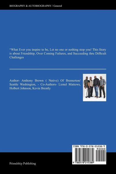 "What Ever you inspire to be, Let no one or nothing stop you! This Story is about Friendship, Over Coming Failures, and Succeeding thru Difficult Challenges."