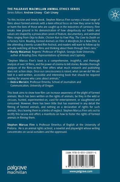 This book aims to show how film can increase awareness of the plight of farmed animals without exploiting them. Much has been written on the rights of animals, be they in the wild or circuses, hunted, experimented on, used for entertainment, or slaughtered and consumed. However, there has been little that has examined in any detail the filming of farmed animals, and nothing on a declaration of rights for such animals, thus leaving them in a limbo of neglect. Stephen Marcus Finn offers a manifesto on how to foster the rights of farmed animals in filming and sets out to rectify this lacuna.