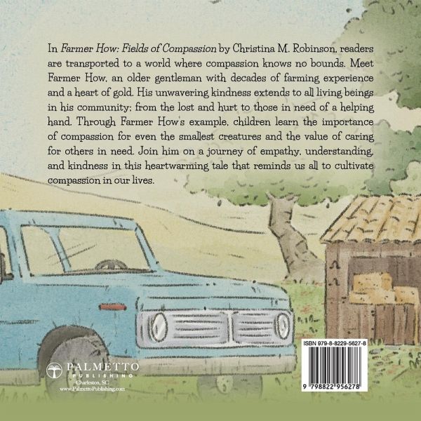Journey with a gentle farmer, nurturing love and understanding for every creature. His golden heart teaches values of kindness, empathy, and care. A tale that inspires us to grow compassion in our lives. In Farmer How: Fields of Compassion, Christina M. Robinson invites readers into the enchanting world of Farmer How, a kind-hearted elderly farmer brimming with years of agricultural wisdom. His world is one where compassion has no limits, reaching out to every life form in his community. From the wandering stray to the weary traveler in need of a helping hand, no one is beyond the reach of Farmer How's caring spirit. This engaging narrative further illuminates the character of Farmer How and his benevolent nature. Robinson paints a vivid picture of a man whose love for others is as deep as his knowledge of the soil. His life serves as an inspiring testament to the power of compassion, resonating with children and teaching them the significance of extending kindness to even the smallest creatures. Embark on this captivating journey with Farmer How, as he navigates the highs and lows of life on the farm with an empathetic heart. His story is one of understanding, kindness, and most importantly, compassion, that leaves a lasting impression on every reader. Through his actions, we learn that empathy and support for others are not just values, but a way of life. Farmer How: Fields of Compassion is more than just a children's book, it's a heartwarming tale that encourages us all to sow seeds of compassion in our lives. As Farmer How cares for his community, he demonstrates the beauty of a life lived in service to others. Christina M. Robinson's enchanting narrative is a memorable journey into the life of a unique character who embodies the true essence of compassion. As you turn the pages of Farmer How: Fields of Compassion, you will be inspired to cultivate a similar spirit of kindness and empathy in your own heart, just like Farmer How. This is a book that resonates with timeless values, making it an essential addition to every child's reading list.