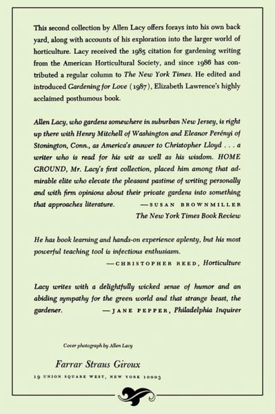 In this splendid collection of short essays, gardener, writer, and professor Allen Lacy takes readers on a series of garden excursions, beginning at home. Lacy writes of his experiences with a variety of plants--evening primrose, prairie gentian, sumac, coreopsis, fuchsias, gloriosa lilies--in his own garden in New Jersey. Then he charts his travels to other gardens, in the United States, Spain, Switzerland, the Netherlands. Final essays in Farther Afield include a discussion of garden writing, profiles of other horticulturists, and humorous pieces on cats and houseplants, and, of course, flamingoes.