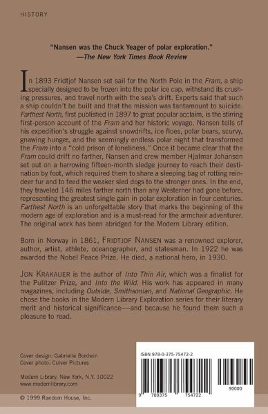 In 1893, Fridjtof Nansen set sail in the Fram, a ship specially designed and built to be frozen into the polar ice cap, withstand its crushing pressures, and travel with the sea's drift closer to the North Pole than anyone had ever gone before. Experts said such a ship couldn't be built and that the voyage was tantamount to suicide. This brilliant first-person account, originally published in 1897, marks the beginning of the modern age of exploration. Nansen vividly describes the dangerous voyage and his 15-month-long dash to the North Pole by sledge. Farthest North is an unforgettable tale and a must-read for any armchair explorer.