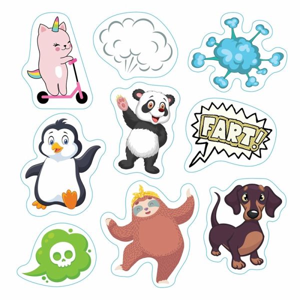 Finally, the sticker book we've all been waiting for! Farting Sloth (& Friends) is packed with super-cute sloth stickers as well as other flatulent animal friends like narwhals, llamas, puppies, dolphins, and so much more. Mix and match farts and sloths however you want. Included are individual fart stickers that represent silent but deadly farts, loud farts, big farts, small farts, and, of course, slow farts. This product is a perfect funny and cute gift for yourself, anyone who loves sloths, or anyone who farts. The whole gang is sure to bring a rootin'-tootin' good time!