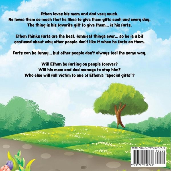 DO YOU HAVE A LITTLE FARTER IN THE HOUSE? A TODDLER THAT LOVES TO FART ON EVERYONE? If so, this book is perfect for them. Ethan loves his mom and dad very much. He loves them so much that he likes to give them gifts each and every day. Sometimes Ethan paints them pictures. Sometimes Ethan gives them cool rocks or good pointy sticks from outside. Sometimes he gives them a kiss on the cheek. But most of the time he gives them his favorite gift, a "special gift"... and that gift... is to fart on them! Ethan thinks farts are the best, funniest things ever... so he is a bit confused why other people don't like it when he farts on them. Will Ethan be farting on people forever? Will his mom and dad manage to stop him? Who else will fall victim to one of Ethan's "special gifts"? This is a book to teach little ones all about the appropriateness of farting. It also teaches them that you should never do something to others that you wouldn't want to be done to you. **If you are looking for a funny and humorous way of teaching your child farting manner and etiquette this book is the one for you! ** Features: - Farting Humor Appropriate for early learners that everyone can relate too! - Fun Colorful Illustrations to keep your child's attention. -Perfect for early readers, pre-schoolers, kindergarten and elementary children. -Teaches children to make good decisions. -8.5 x 8. 5 Book -Bonus Material