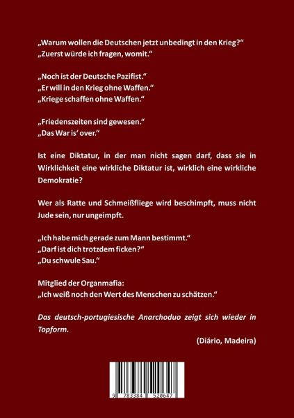 Pünktlich zum 3. Weltkrieg, zu dem es entgegen der Erwartung des deutsch-portugiesischen Anarchoduos Schrey/Gritar nun vielleicht doch nicht kommt (Stand: März 2025), werden wieder aus allen Rohren Salven schwärzesten, flächendeckend politisch unkorrekten Humors auf den Zeitgeist der Zeitenwende abgefeuert. Ein Labsal für alle Hirne, die außerhalb des Mainstreams auf dem Trockenen darben, im beharrlichen Sträuben, en woke zu sein.