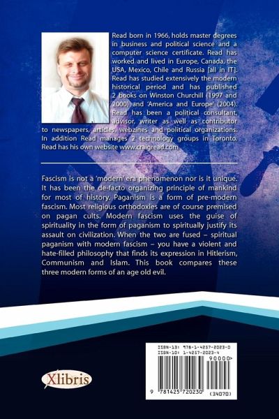 Fascism is not a 'modern' era phenomenon nor is it unique. It has been the de-facto organizing principle of mankind for most of history. Paganism is a form of pre-modern fascism. Most religious orthodoxies are of course premised on pagan cults. Modern fascism uses the guise of spirituality in the form of paganism to spiritually justify its assault on civilization. When the two are fused - spiritual paganism with modern fascism - you have a violent and hate-filled philosophy that finds its expression in Hitlerism, Communism and Islam. This book compares these three modern forms of an age old evil that has been the main obstacle to human progress. This book was written after extensive research, travel, interviews and help from others more knowledgeable on certain topics. I don't pretend to be an expert in all the areas of historical political and economic development. Nor am I posing as the expert investigator on any of the chosen themes that populate the work. Thousands of more competent analysts exist in each area. I wrote this book to objectively narrate a common thread and threat in human history, namely that of Fascism and its 'orientalist' genetic composition. It is important in life to impartially record reality, to see the world for what it is and to defend our civilization against utopia's, fantasies and evil. In this regard we need more literature and expositions which make the link between the various ideologies which are in essence pagan cults; their commonality throughout history; and their threat to civilization. It is the threat posed to civilization by immoderate Islam - another type of pagan cult - that prompted the creation of this summary work. Let me explain as well what this book is not. It is not a diatribe against individual Muslims; it is not a declaration of hate against any non-Western people, lands or empires; it is not intended to be the most detailed study of any of the fascist cults past or present; and it is not intended to supplant any of the existing literature on Nazism, Stalinism, or Islam. The book does intend however, to show a common framework amongst the pagan ideologies that have tried to end mankind's development and extinguish liberty. To keep the book short and concise I have chosen to focus on three primary cults, namely; Hitler's Germany, Lenin-Stalinism in Russia, and Islam. I could have discussed other cults and movements but the essential points I want to make can be given by examining these three ideological fascisms. The conclusions formed by such a comparison can be extended to various other criminal ideologies and regimes throughout mankind's history. I hope the book clarifies some ideals, opens some minds and gives some food for thought. You can read the book in its entirety or skip to a chapter that is of more interest. I have tried to keep all the footnotes down to a minimum, though I do source all ideas that are not my own. If you have any questions on sources, content or where my ideas come from then please ask. As for people who constantly harp that criticism is akin to hate speech, do some reading, live in a fascist state and understand what freedom really means. My website is www.craigread.com Craig Read Toronto, Canada [Happy home of a corrupt, paternalistic, over-governed Socialist State.]