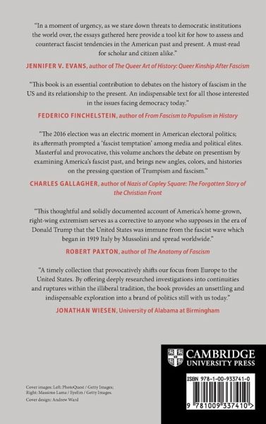 Introduction: Fascism in America: Past and Present Gavriel D. Rosenfeld and Janet Ward; Part I. Strategic Thinking about Fascism: 1. Liberalism in crisis: what is fascism and where does it come from? Geoff Eley; 2. Anarchy and the state of nature in Donald Trump's America and Adolf Hitler's Germany Thomas Weber; 3. 'America first': nationalism, nativism and the fascism question, 1880-2020 Matthew Specter and Varsha Venkatasubramanian; Part II. Homegrown Nazis: 4. The American Fascists Linda Gordon; 5. Hitler at the ballot box? Support for fascism among American elected officials Bradley W. Hart; 6. Fascism and antisemitism in 1930s America: the genocidal vision of the silver shirts Richard Steigmann-Gall; Part III. White Anti-Democratic Violence and Black Antifascist Activism: 7. Vigilantism and fascism in the Pacific Northwest: an insurgent tradition renewed Alexander Reid Ross; 8. 'A heritage of fascists without labels': black antifascism and the productive politics of analogy Anna F. Duensing; 9. 'No Trump, no KKK, no fascist USA': African American activists fight fascism, 1960-1980s Ousmane K. Power-Greene; Part IV. Countering Fascism in Culture and Policy: 10. Fascism in American culture: how alternate a history? Gavriel D. Rosenfeld; 11. Concentration camps in Trump's America? Marla Stone; 12. Formulating policy responses to the right-wing threat Cynthia Miller-Idriss; Epilogue Ruth Ben-Ghiat.