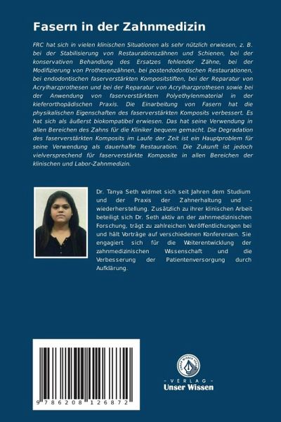 FRC hat sich in vielen klinischen Situationen als sehr nützlich erwiesen, z. B. bei der Stabilisierung von Restaurationszähnen und Schienen, bei der konservativen Behandlung des Ersatzes fehlender Zähne, bei der Modifizierung von Prothesenzähnen, bei postendodontischen Restaurationen, bei endodontischen faserverstärkten Kompositstiften, bei der Reparatur von Acrylharzprothesen und bei der Reparatur von Acrylharzprothesen sowie bei der Anwendung von faserverstärktem Polyethylenmaterial in der kieferorthopädischen Praxis. Die Einarbeitung von Fasern hat die physikalischen Eigenschaften des faserverstärkten Komposits verbessert. Es hat sich als äußerst biokompatibel erwiesen. Das hat seine Verwendung in allen Bereichen des Zahns für die Kliniker bequem gemacht. Die Degradation des faserverstärkten Komposits im Laufe der Zeit ist ein Hauptproblem für seine Verwendung als dauerhafte Restauration. Die Zukunft ist jedoch vielversprechend für faserverstärkte Komposite in allen Bereichen der klinischen und Labor-Zahnmedizin.