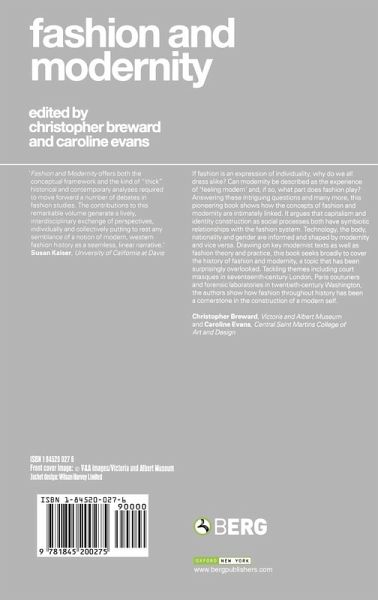 If fashion is an expression of individuality, why do we all dress alike? Can modernity be described as the experience of 'feeling modern' and, if so, what part does fashion play? Answering these intriguing questions and many more, this pioneering book shows how the concepts of fashion and modernity are intimately linked. It argues that capitalism and identity construction as social processes both have symbiotic relationships with the fashion system. Technology, the body, nationality and gender are informed and shaped by modernity, and vice versa. Drawing on key modernist texts as well as fashion theory and practice, this book seeks broadly to cover the history of fashion and modernity, a topic that has been surprisingly overlooked. Tackling themes including court masques in seventeenth-century London, Paris couturiers and forensic laboratories in twentieth-century Washington, the authors show how fashion throughout history has been a cornerstone in the construction of a modern self.