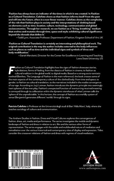 The book deals with fashion as a form of visual culture embodied through signs. It reproduces itself with a pattern based on the semiotic network of places, social practices and forms of imagery.