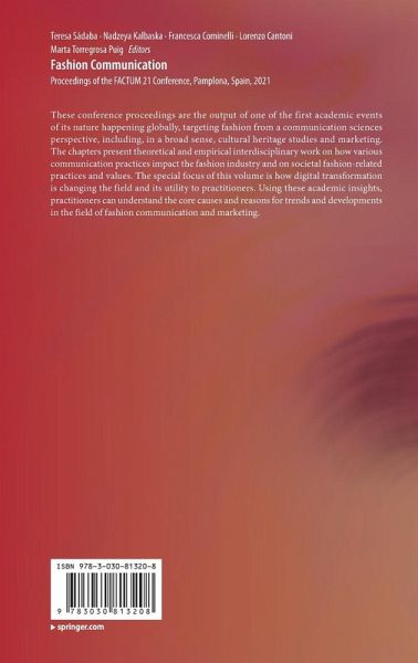 These conference proceedings are the output of one of the first academic events of its nature happening globally, targeting fashion from a communication sciences perspective, including, in a broad sense, cultural heritage studies and marketing. The chapters present theoretical and empirical interdisciplinary work on how various communication practices impact the fashion industry and on societal fashion-related practices and values. The special focus of this volume is how digital transformation is changing the field and its utility to practitioners. Using these academic insights, practitioners can understand the core causes and reasons for trends and developments in the field of fashion communication and marketing.