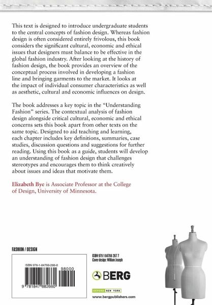 This text is designed to introduce undergraduate students to the central concepts of fashion design. Whereas fashion design is often considered entirely frivolous, this book considers the significant cultural, economic, and ethical issues that designers must balance to be effective in the global fashion industry. After looking at the history of fashion design, the book provides an overview of the conceptual process involved in developing a fashion line and bringing garments to the market. It looks at the impact of individual consumer characteristics as well as aesthetic, cultural, and economic influences on design. The book addresses a key topic in the new 'Understanding Fashion' series. The contextual analysis of fashion design alongside critical cultural, economic, and ethical concerns sets this book apart from other texts on the same topic. Designed to aid teaching and learning, each chapter includes key words, summaries, case studies and discussion questions. Using this book as a guide students will develop an understanding of fashion design that challenges stereotypes and encourages them to think creatively about issues and ideas that motivate them.