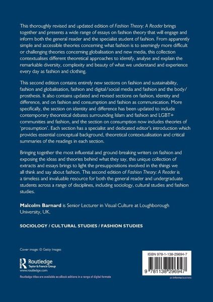 This second edition contains entirely new sections on fashion and sustainability, fashion and globalisation, fashion and digital/social media and fashion and the body/prosthesis. It also contains updated and revised sections on fashion, identity and difference, and on fashion and consumption and fashion as communication. More specifically, the section on identity and difference has been updated to include contemporary theoretical debates surrounding Islam and fashion, and LGBT+ communities and fashion and the section on consumption now includes theories of 'prosumption'. Each section has a specialist and dedicated Editor's Introduction which provides essential conceptual background, theoretical contextualisation and critical summaries of the readings in each section.