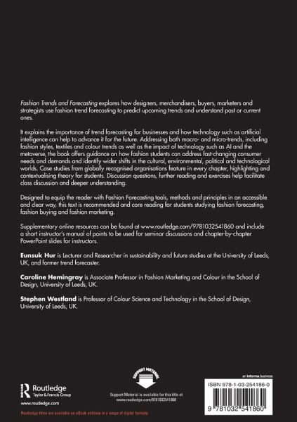 Fashion Trends and Forecasting explores how designers, merchandisers, buyers, marketers and strategists use fashion trend forecasting to predict upcoming trends and understand past or current ones. This text is recommended and core reading for students studying Fashion Forecasting, Fashion Buying and Fashion Marketing.
