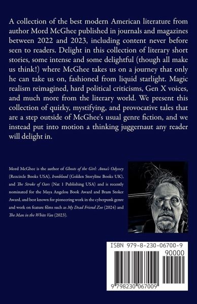 A collection of the best modern American literature from author Mord McGhee published in journals and magazines between 2022 and 2023, including content never before seen to readers. Delight in this collection of literary short stories, some intense and some delightful (though all make us think!) where McGhee takes us on a journey that only he can take us on, fashioned from liquid starlight. Magic realism reimagined, hard political criticisms, Gen X voices, and much more from the literary world. We present this collection of quirky, mystifying, and provocative tales that are a step outside of McGhee's usual genre fiction, and we instead put into motion a thinking juggernaut any reader will delight in.