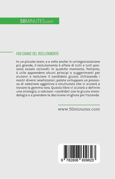 In un piccolo team, e a volte anche in un'organizzazione più grande, il reclutamento è affare di tutti e tutti possono essere coinvolti in qualche momento. Pertanto, è utile apprendere alcuni principi e suggerimenti per aiutarvi a reclutare il candidato giusto. Utilizzando i nostri diversi analizzatori, potete sviluppare un processo di selezione oggettivo e strutturato che vi aiuterà a trovare la gemma rara. Questo libro vi aiuterà a definire una strategia, a valutare i candidati con la giusta metodologia e a prendere la decisione migliore per l'azienda.